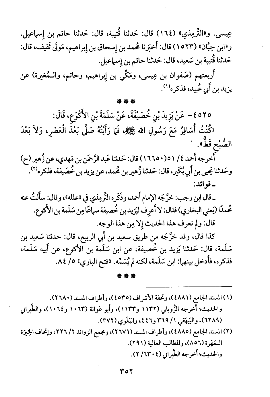 - قلنا: إسناده ضعيفٌ؛ قال ابن رجب: خرجه الإمام أحمد، وذكره التِّرمِذي في «علله»، وقال: سألت عنه محمدا، يعني البخاري، فقال: لا أعرف ليزيد بن خصيفة سماعا من سلمة بن الأكوع.
