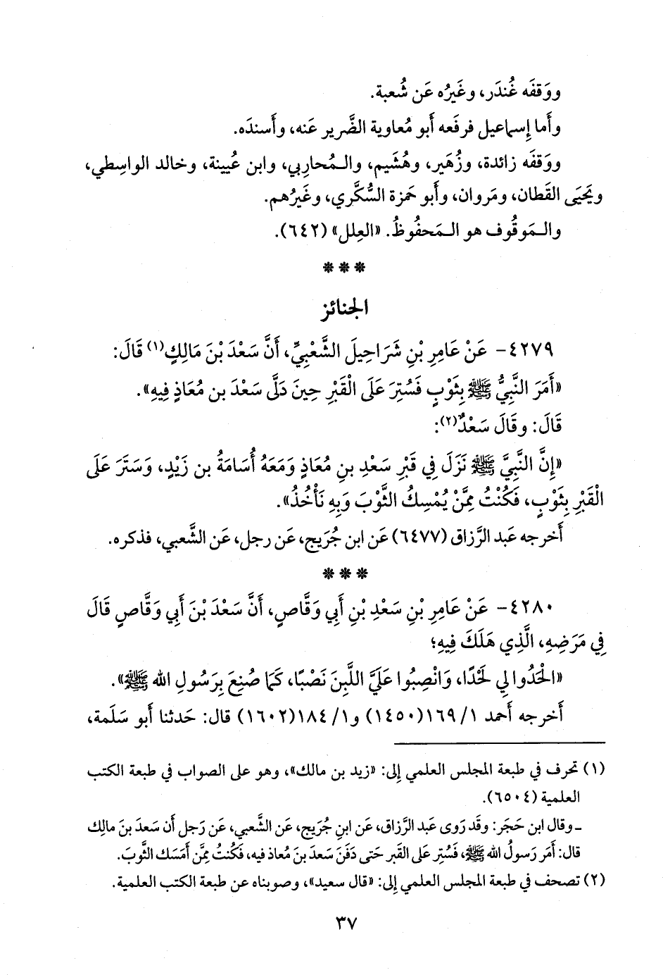 ٤٢٧٩ - عن عامر بن شراحيل الشعبي، أن سعد بن مالك (¬١) قال: