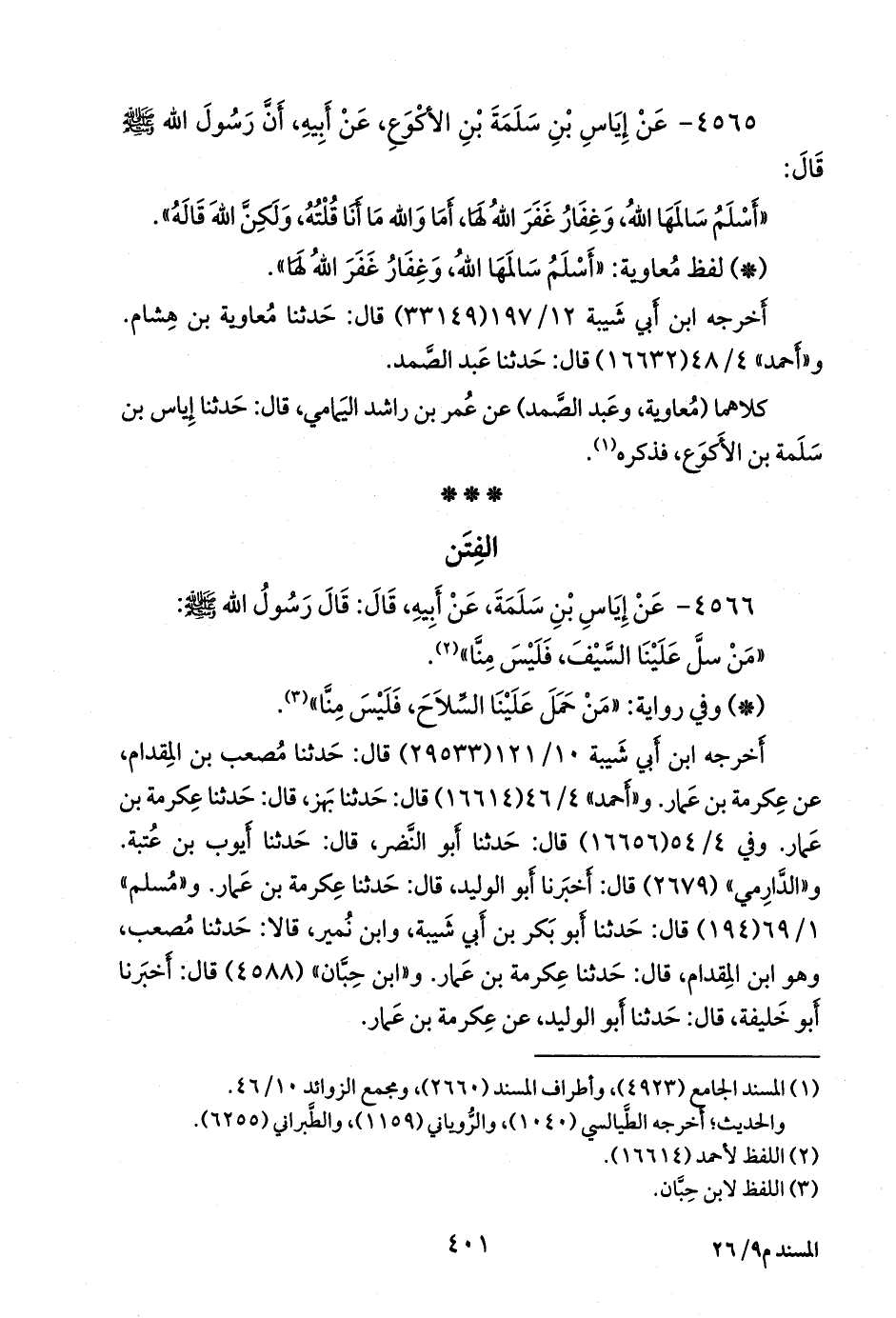 (¬٣) المسند الجامع (٤٨٩٨)، وتحفة الأشراف (٤٥٢١)، وأطراف المسند (٢٦٥٨).