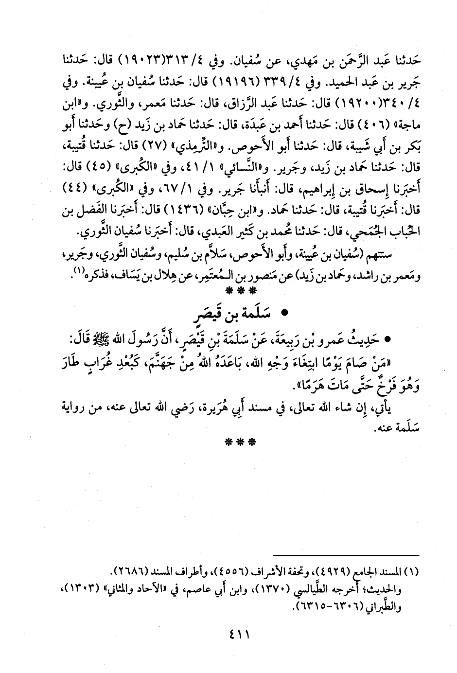 - حديث عَمرو بن ربيعة، عن سلمة بن قيصر، أن رسول الله صَلى الله عَليه وسَلم قال: