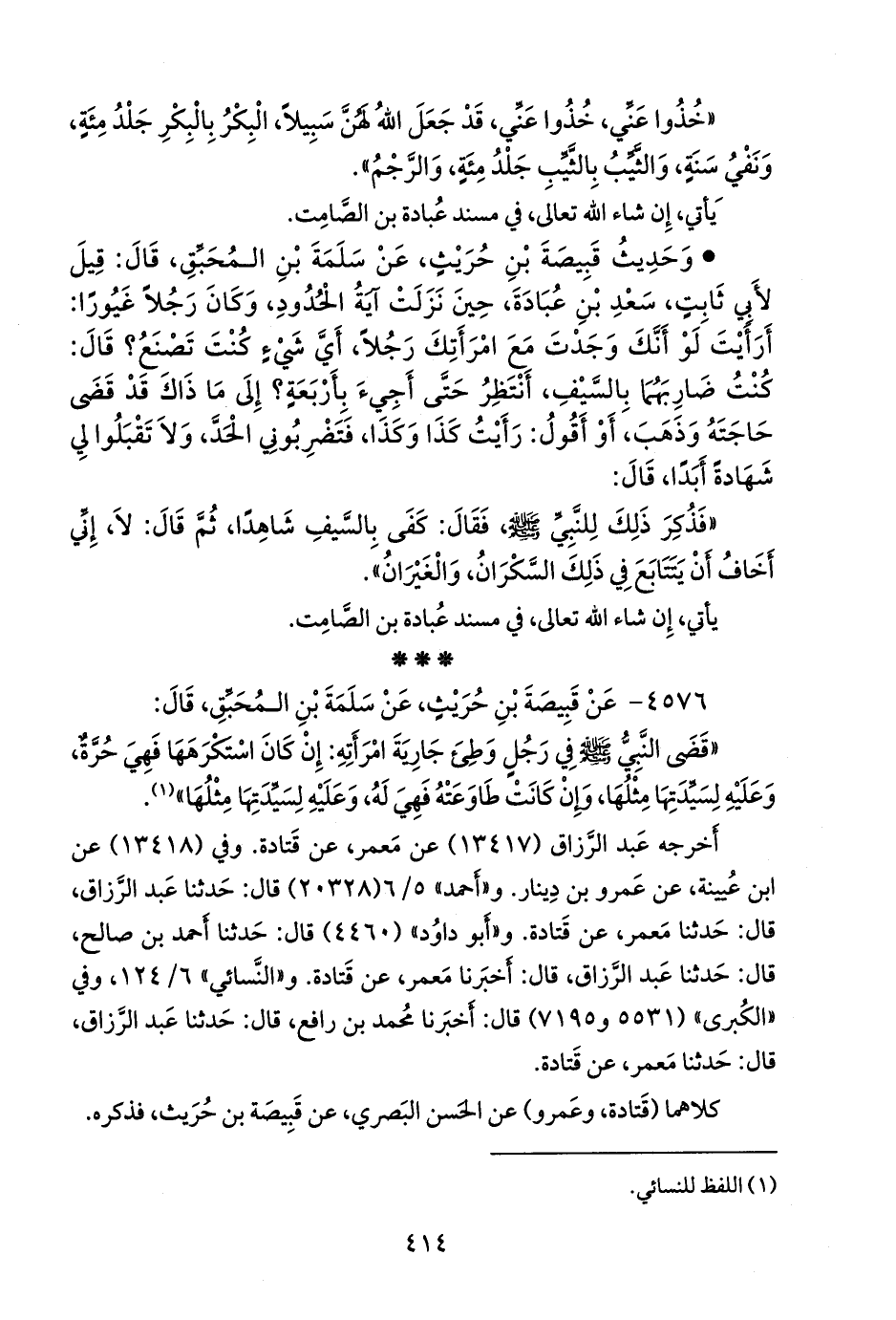 ٤٥٧٦ - عن قَبيصَة بن حريث، عن سلمة بن المُحَبَّق، قال: