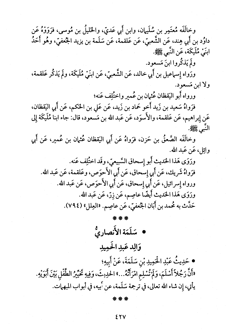 يأتي إن شاء الله تعالى، في ترجمة سلمة، عن أبيه، في أَبواب المبهمات.