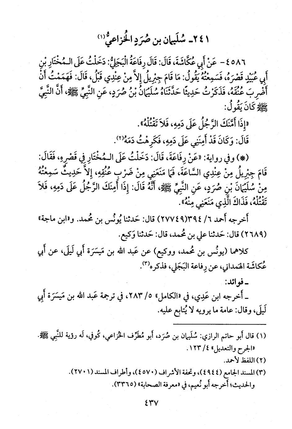 (¬٣) المسند الجامع (٤٩٤٤)، وتحفة الأشراف (٤٥٧٠)، وأطراف المسند (٢٧٠١).