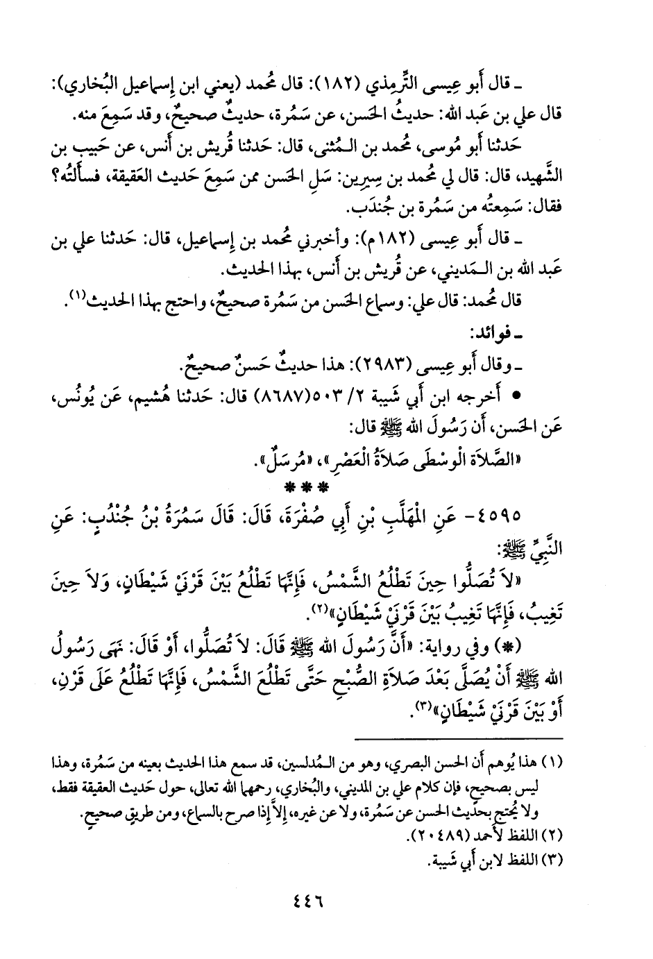 ـ قال التِّرمِذي (١٨٢): قال محمد، يعني ابن إسماعيل البخاري: قال علي بن عبد الله: حديث الحسن، عن سمرة، حديث صحيح، وقد سمع منه.