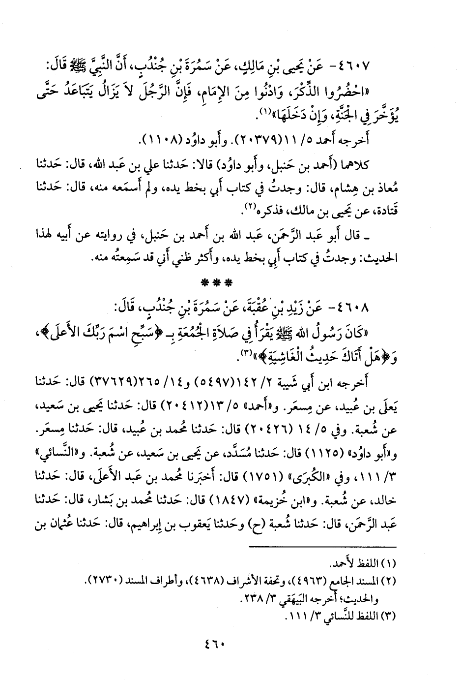 (¬٢) المسند الجامع (٤٩٦٥)، وتحفة الأشراف (٤٦١٥)، وأطراف المسند (٢٧١٤).