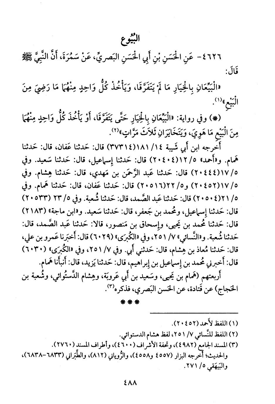 أربعتهم (همام بن يحيى، وسعيد بن أبي عَروبَة، وهشام الدَّستوائي، وشعبة بن الحجاج) عن قتادة، عن الحسن البصري، فذكره (¬٣).