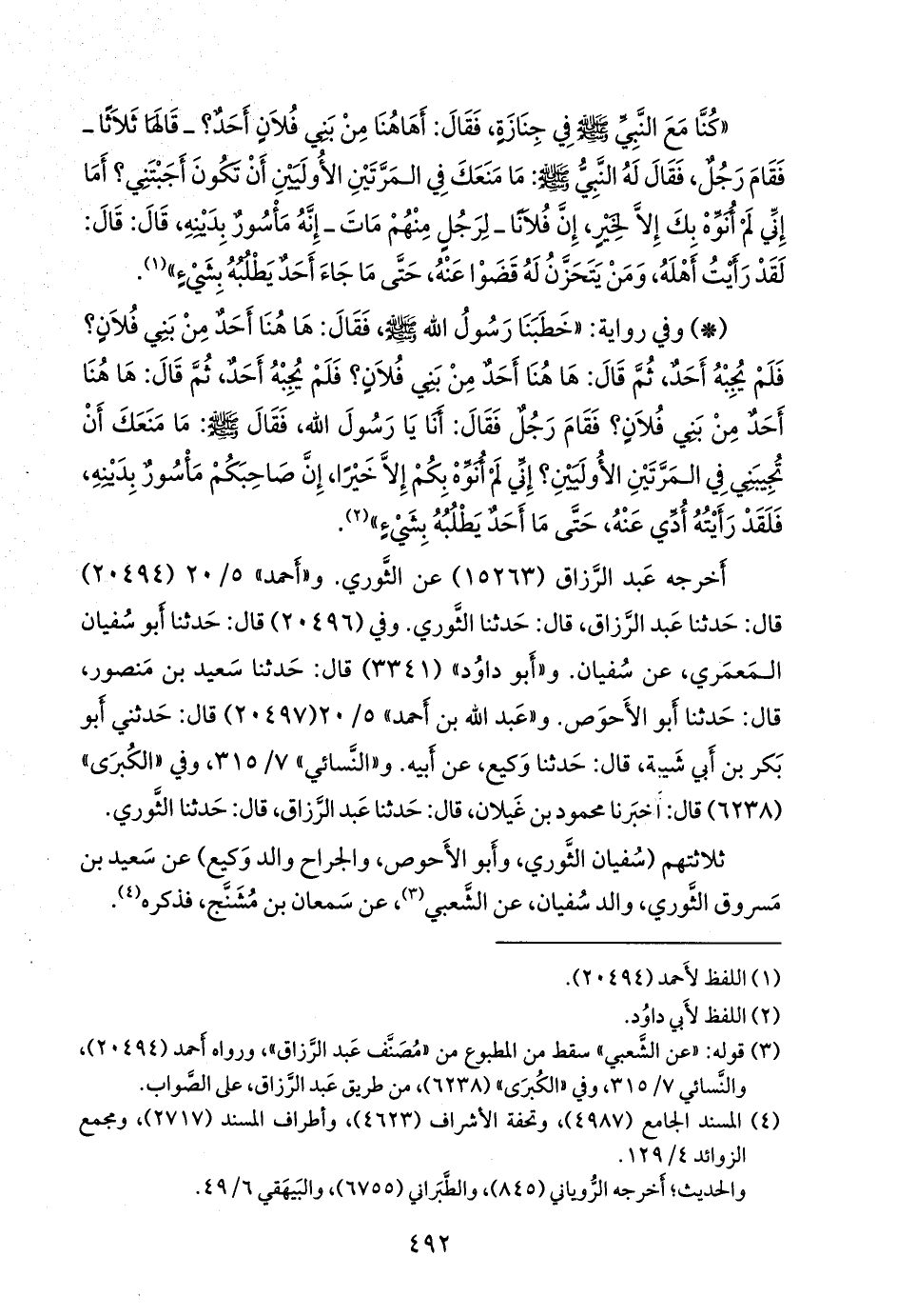 ثلاثتهم (سفيان الثوري، وأَبو الأحوص، والجراح والد وكيع) عن سعيد بن مسروق الثوري والد سفيان، عن الشعبي (¬١)، عن سمعان بن مشنج، فذكره (¬٢).