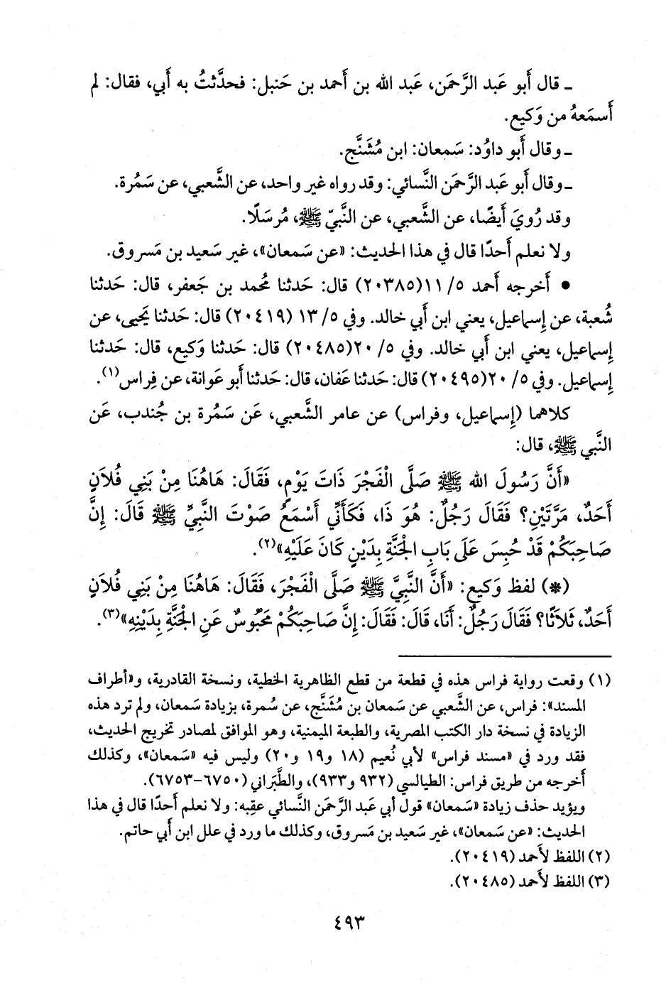(¬١) وقعت رواية فراس هذه في قطعة من قطع الظاهرية الخطية، ونسخة القادرية، و «أطراف المسند»: فراس، عن الشعبي، عن سمعان بن مشنج، عن سمرة، بزيادة سمعان، ولم ترد هذه الزيادة في نسخة دار الكتب المصرية، والطبعة الميمنية، وهو الموافق لمصادر تخريج الحديث، فقد ورد في «مسند فراس» لأبي نُعيم (١٨ و ١٩ و ٢٠) وليس فيه «سمعان»، وكذلك أخرجه من طريق فراس: الطيالسي (٩٣٢ و ٩٣٣)، والطبراني (٦٧٥٠: ٦٧٥٣).