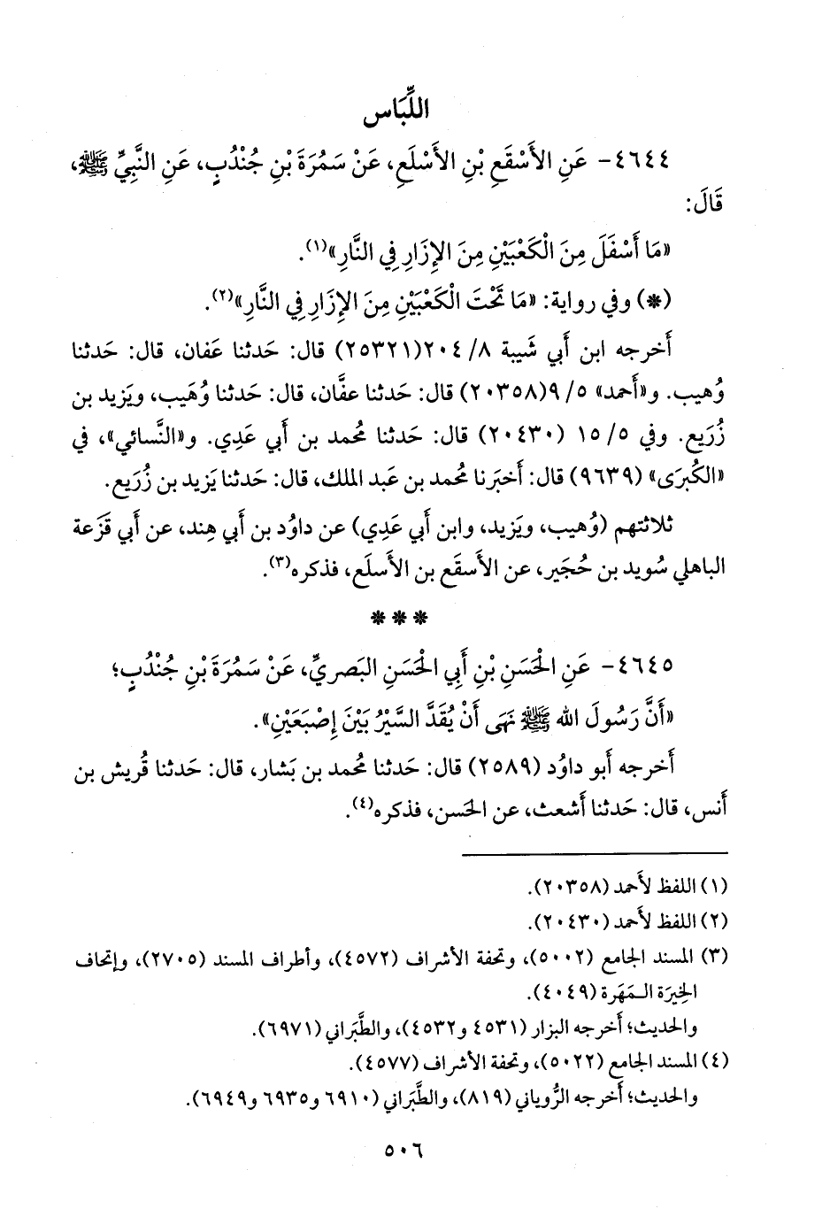 (¬٣) المسند الجامع (٥٠٠٢)، وتحفة الأشراف (٤٥٧٢)، وأطراف المسند (٢٧٠٥)، وإتحاف الخِيرَة المَهَرة (٤٠٤٩).