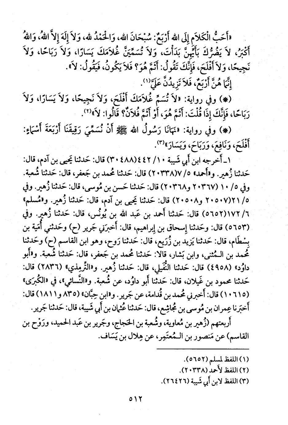 ٢ ـ وأخرجه ابن أبي شيبة (٢٦٤٢٦) قال: حدثنا مُعتَمِر بن سليمان. و «أحمد» ٥/ ١٢ (٢٠٤٠٠) قال: حدثنا مُعتَمِر بن سليمان. و «الدَّارِمي» (٢٨٦١) قال: أخبرنا زكريا بن عَدي، قال: أخبرنا معتمر. و «مسلم» ٦/ ١٧١ (٥٦٥٠) قال: حدثنا يحيى بن يحيى، وأَبو بكر بن أبي شيبة. قال أَبو بكر: حدثنا مُعتَمِر بن سليمان، وقال يحيى: أخبرنا المُعتَمِر بن سليمان. وفي ٦/ ١٧٢ (٥٦٥١) قال: وحدثنا قتيبة بن سعيد، قال: حدثنا جَرير. و «ابن ماجة» (٣٧٣٠) قال: حدثنا أَبو بكر، قال: حدثنا المُعتَمِر بن سليمان. و «أَبو داود» (٤٩٥٩) قال: حدثنا أحمد بن حنبل، قال: حدثنا المُعتَمِر. و «ابن حِبَّان» (٥٨٣٦) قال: أخبرنا عمر بن محمد الهمداني، قال: حدثنا محمد بن عبد الأعلى، قال: حدثنا مُعتَمِر بن سليمان.