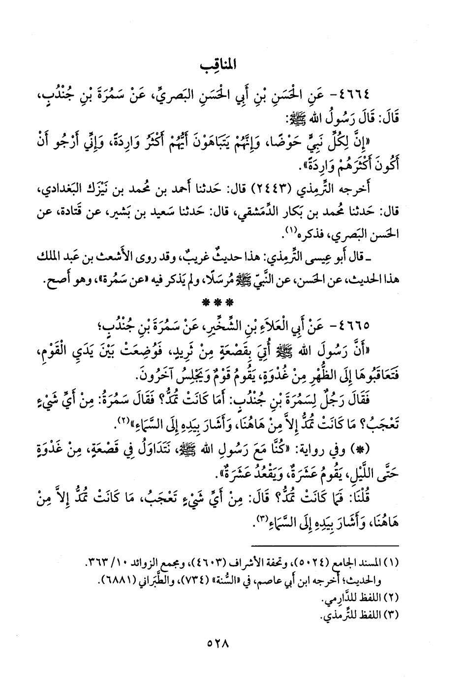 «إن لكل نبي حوضا، وإنهم يتباهون أيهم أكثر واردة، وإني أرجو أن أكون أكثرهم واردة».