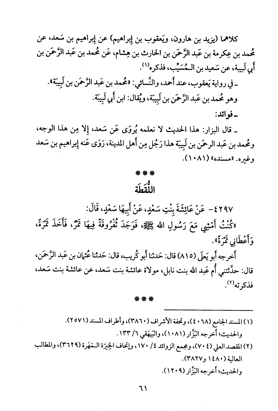 (¬١) المقصد العَلي (٧٠٤)، ومَجمَع الزوائد ٤/ ١٧٠, وإتحاف الخِيرَة المَهَرة (٣٦٢٩)، والمطالب العالية (١٤٨٠ و ٣٨٢٧).