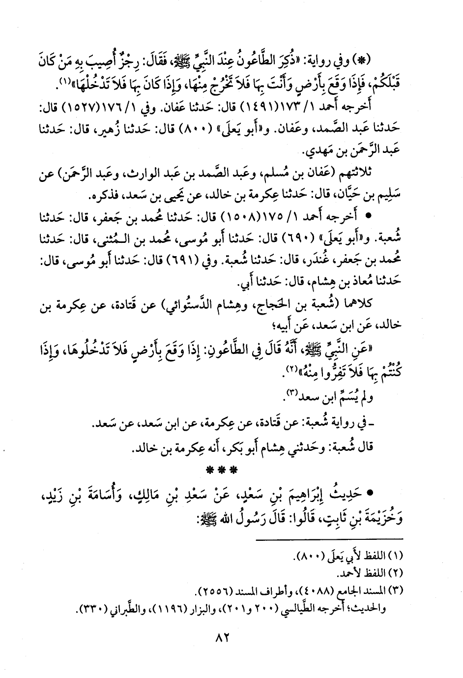 • حديث إبراهيم بن سعد، عن سعد بن مالك، وأُسامة بن زيد، وخزيمة بن ثابت، قالوا: قال رسول الله صَلى الله عَليه وسَلم: