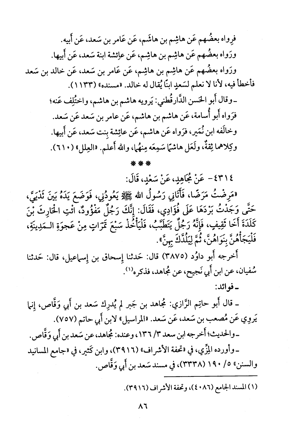 - وأورده المزي في «تحفة الأشراف» (٣٩١٦)، وابن كثير في «جامع المسانيد والسنن» ٥/ ١٩٠ (٣٣٣٨)، في مسند سعد بن أبي وقاص.