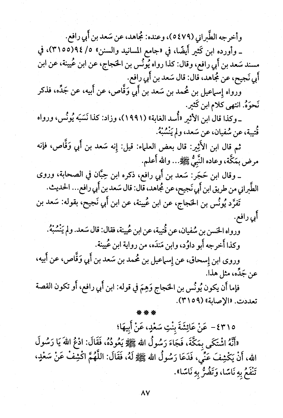 ٤٣١٥ - عن عائشة بنت سعد، عن أبيها؛