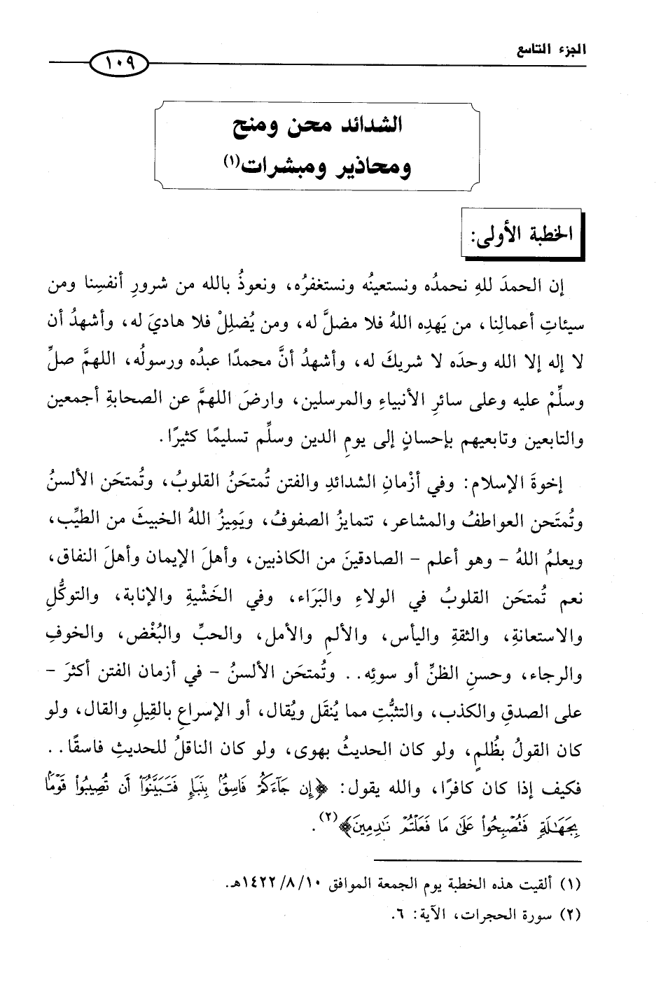 (¬1) ألقيت هذه الخطبة يوم الجمعة الموافق 10/ 8/ 1422 هـ.