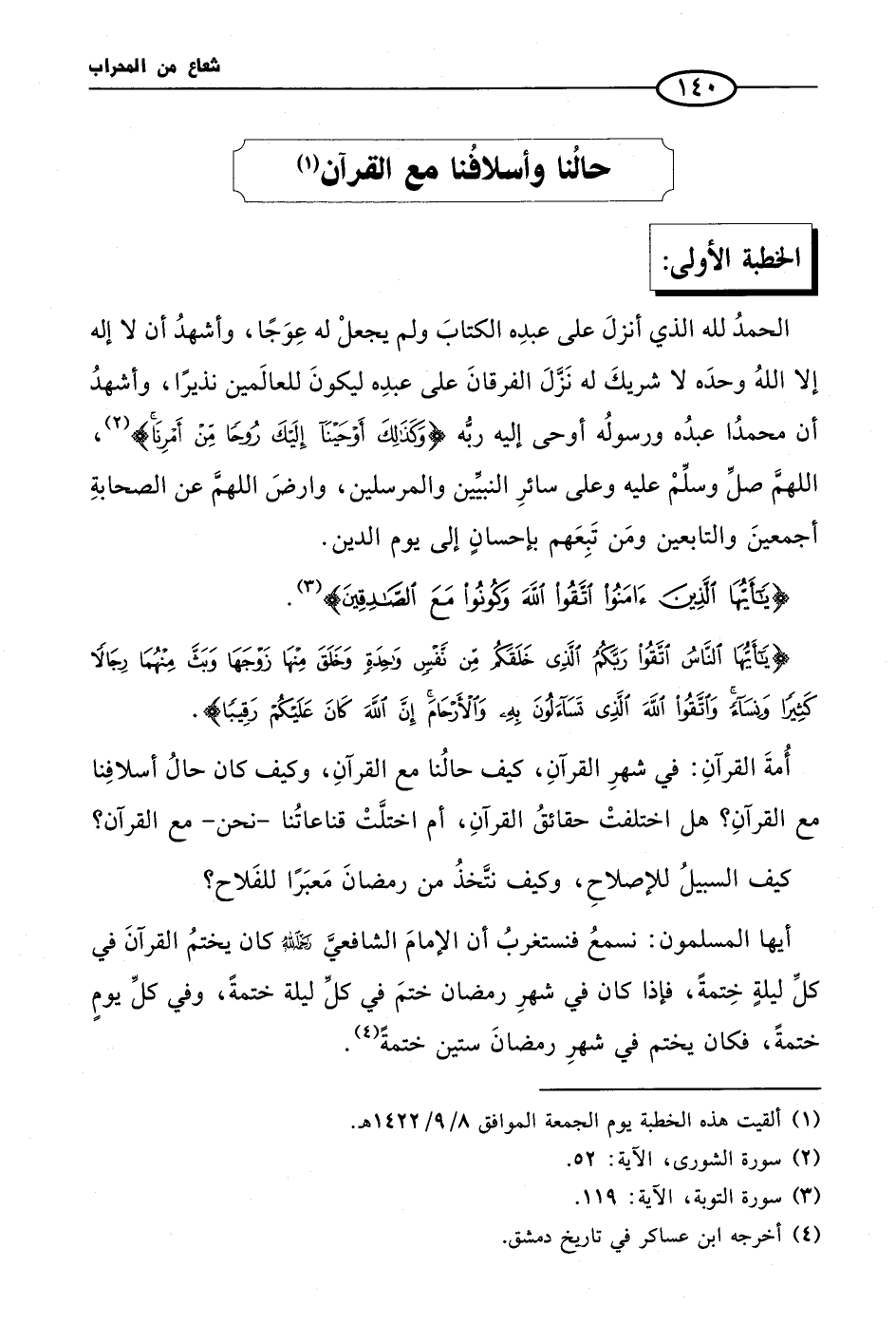 حالُنا وأسلافُنا مع القرآن (¬1)