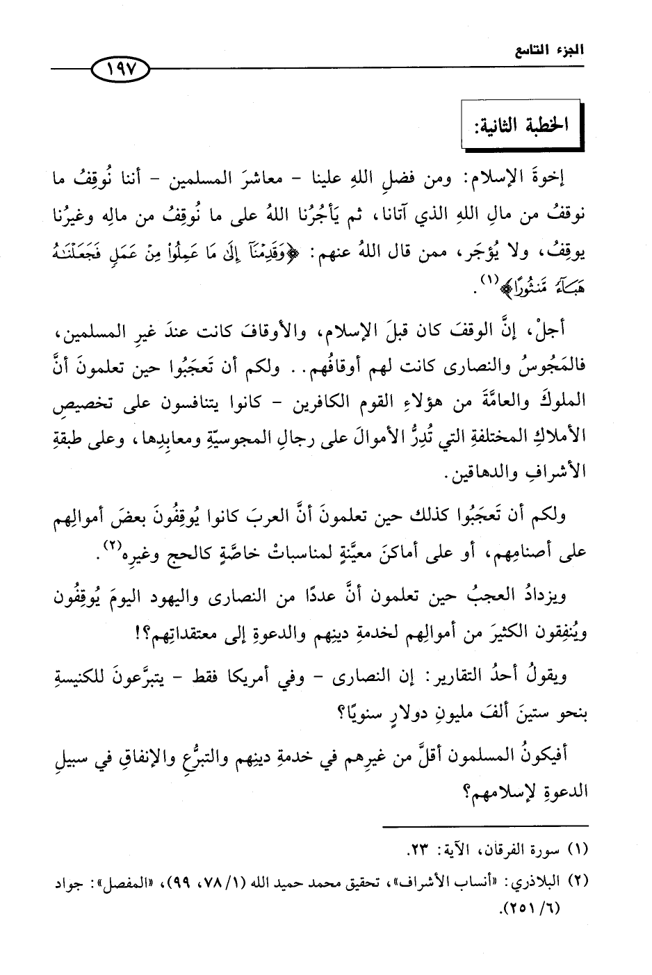 ويزدادُ العجبُ حين تعلمون أنَّ عددًا من النصارى واليهود اليومَ يُوقِفُون ويُنفِقون الكثيرَ من أموالِهم لخدمةِ دينِهم والدعوةِ إلى معتقداتِهم؟ !