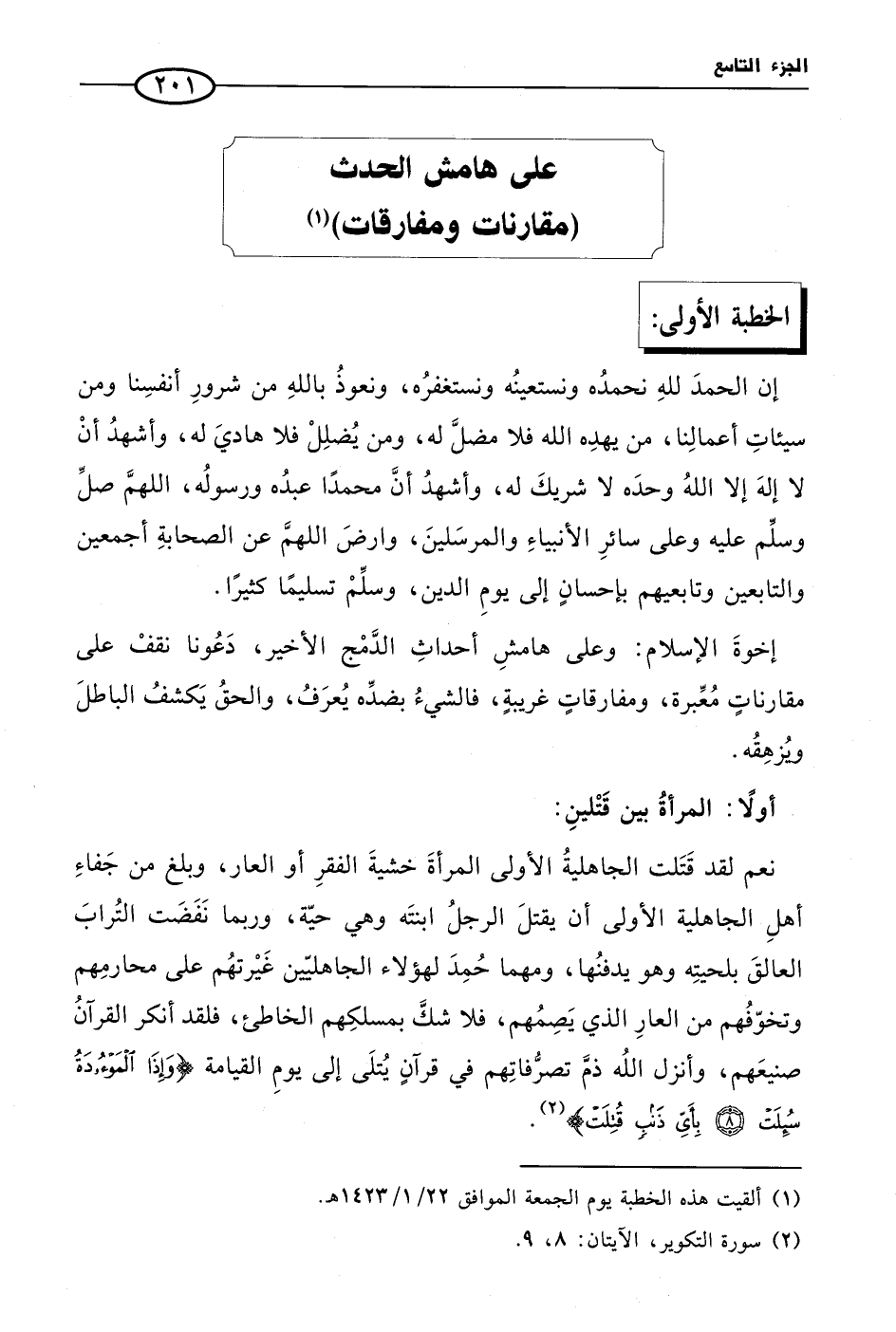 (¬1) ألقيت هذه الخطبة يوم الجمعة الموافق 22/ 1/ 1423 هـ.