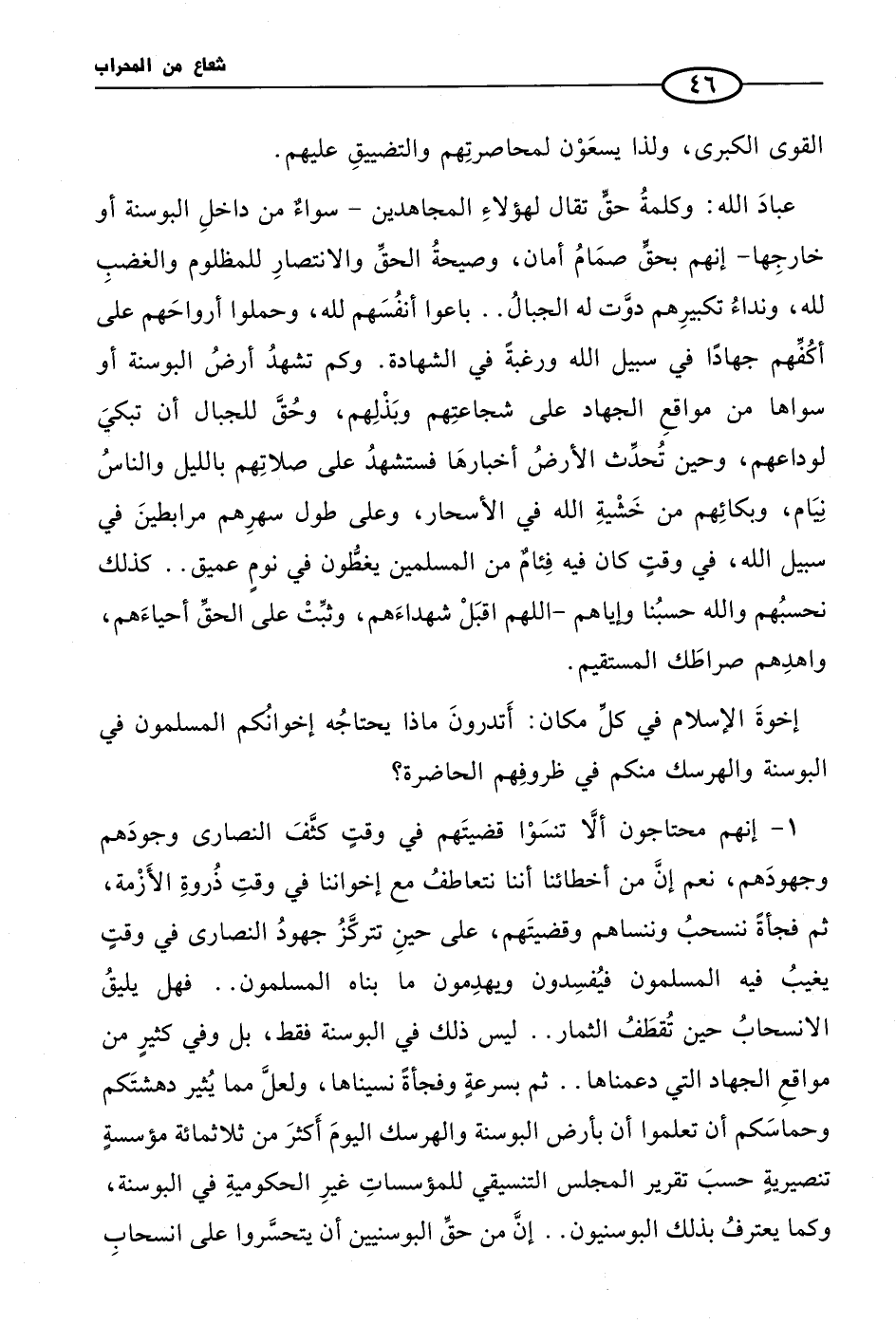 إخوةَ الإسلام في كلِّ مكان: أَتدرونَ ماذا يحتاجُه إخوانُكم المسلمون في البوسنة والهرسك منكم في ظروفِهم الحاضرة؟
