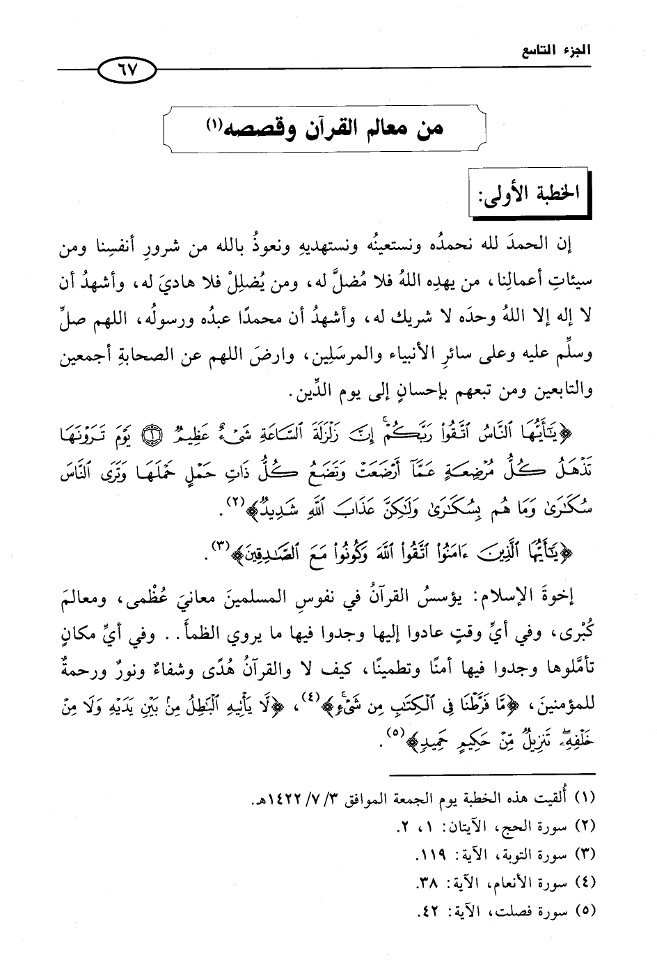 (¬1) أُلقيت هذه الخطبة يوم الجمعة الموافق 3/ 7/ 1422 هـ.