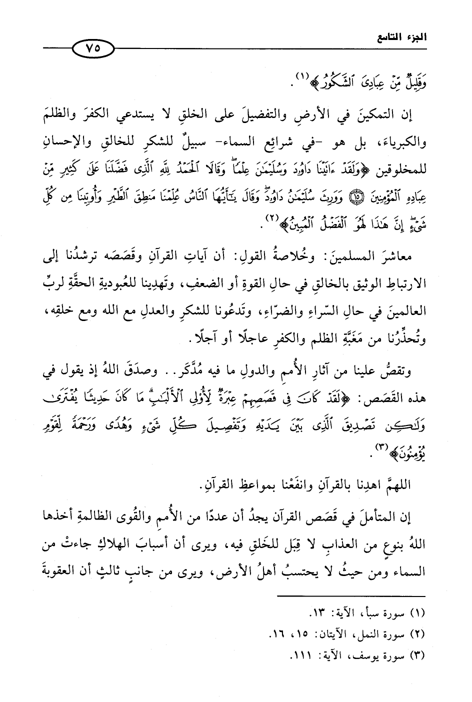 وَقَلِيلٌ مِنْ عِبَادِيَ الشَّكُورُ} (¬1).