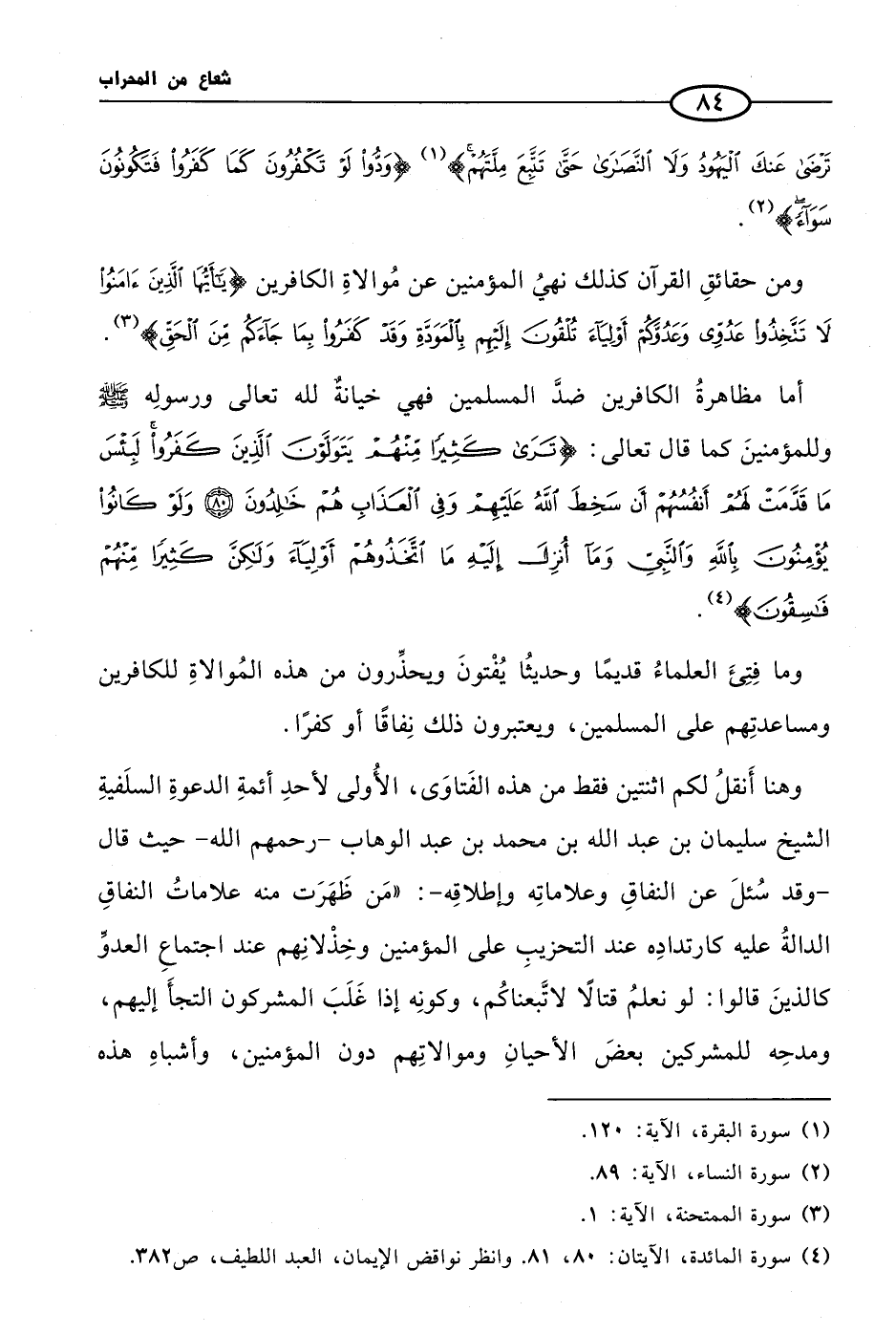(¬4) سورة المائدة، الآيتان: 80، 81. وانظر نواقض الإيمان، العبد اللطيف، ص 382.