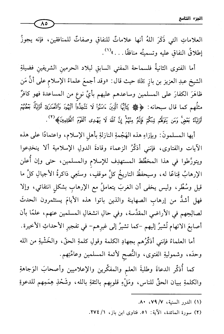 (¬2) سورة المائدة، الآية: 51. فتاوى ابن باز، 1/ 274.