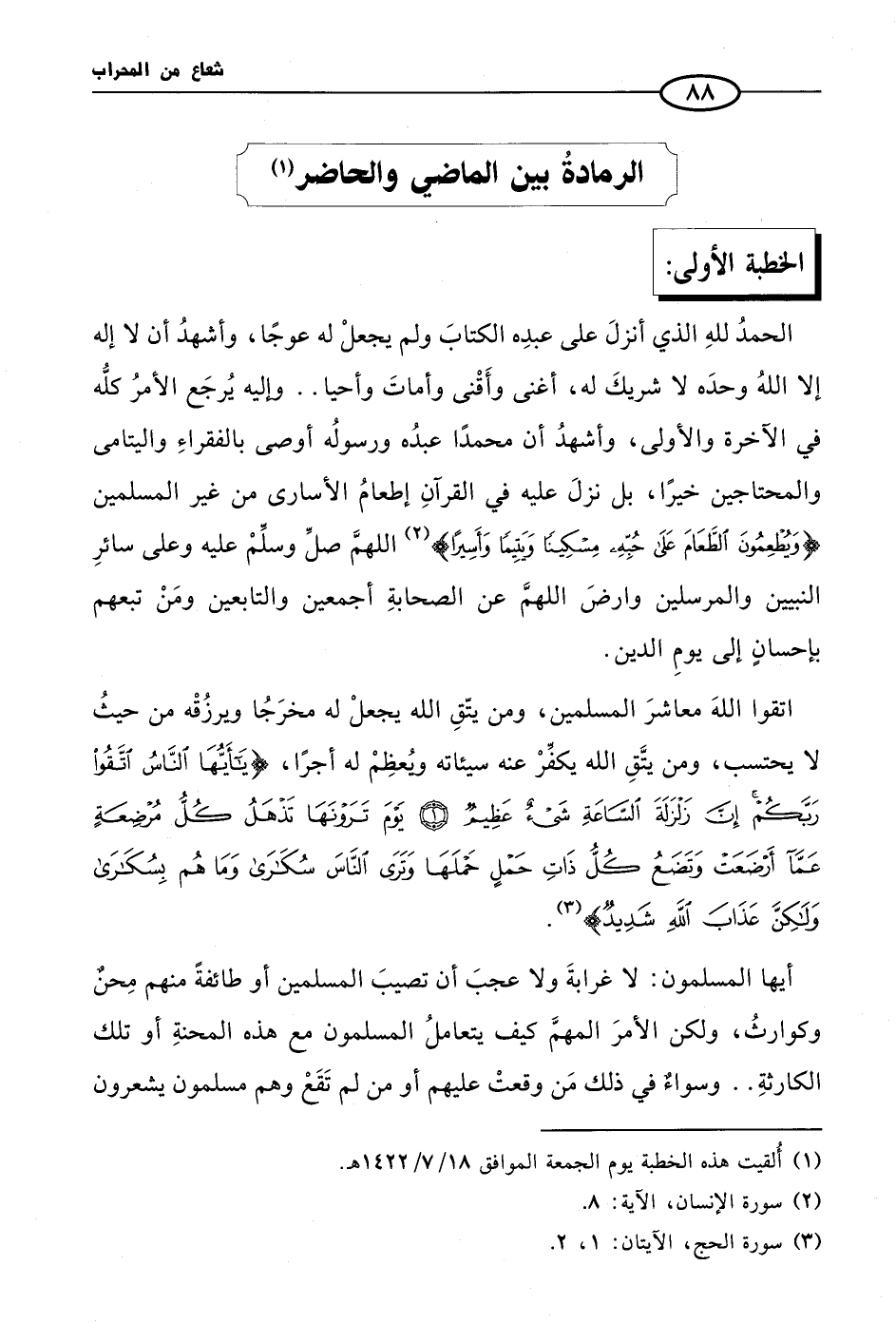(¬1) أُلقيت هذه الخطبة يوم الجمعة الموافق 18/ 7/ 1422 هـ.