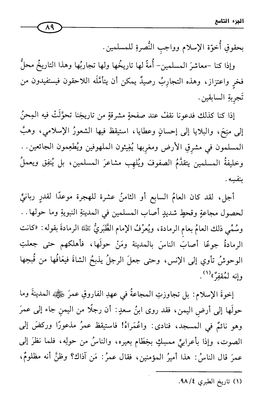 إذا كنا كذلك فدعونا نقفْ عند صفحةٍ مشرقةٍ من تاريخِنا تحوَّلَتْ فيه المِحنُ إلى منِحَ، والبلايا إلى إحسانٍ وعطايا، استيقظ فيها الشعورُ الإسلامي، وهبَّ المسلمون في مشرِقِ الأرض ومغرِبها يُغِيثون الملهوفين ويُطعِمون الجائعين .. وخليفةُ المسلمين يتقدَّمُ الصفوفَ ويُلهِب مشاعرَ المسلمين، بل يُنفِق ويعملُ بنفسِه.