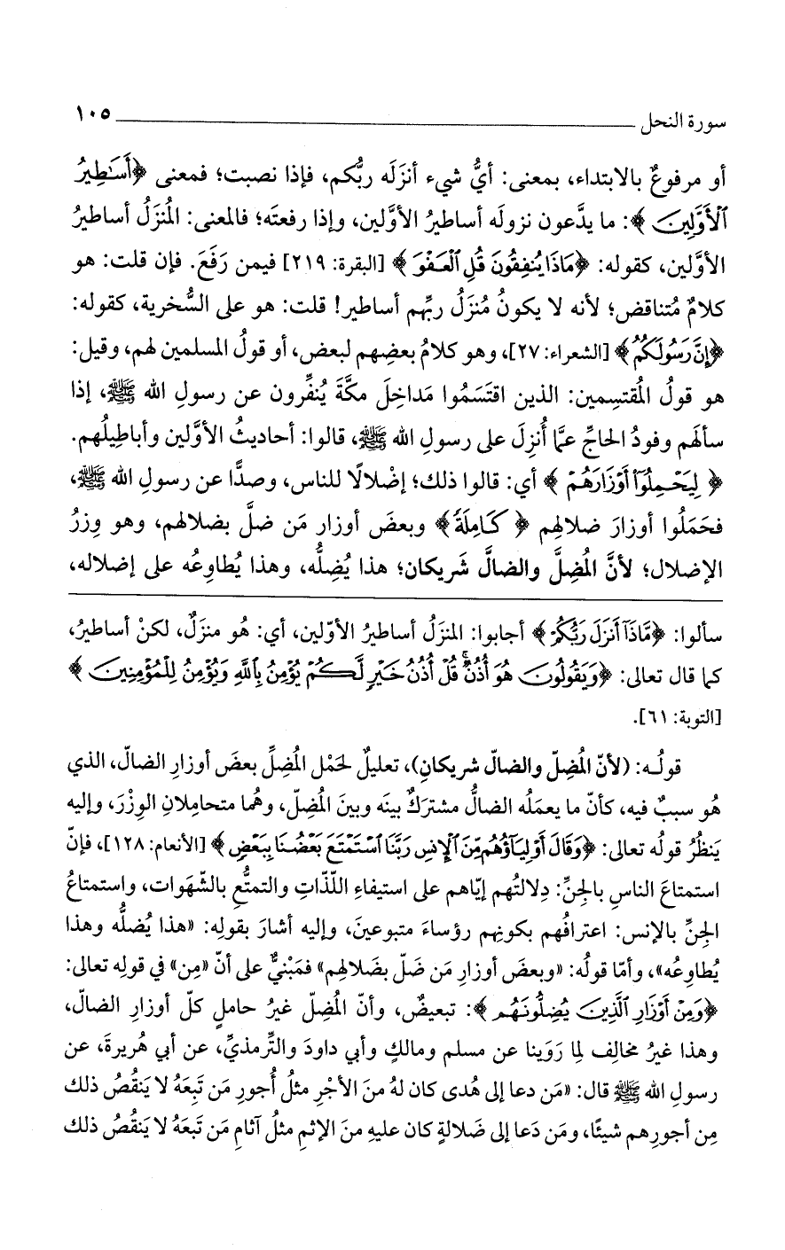 سألوا: (مَاذَا أَنزَلَ رَبُّكُمْ) أجابوا: المنزل أساطير الأولين، أي: هو منزل، لكن أساطير، كما قال تعالى: (وَيَقُولُونَ هُوَ أُذُنٌ قُلْ أُذُنُ خَيْرٍ لَكُمْ يُؤْمِنُ بِاللَّهِ وَيُؤْمِنُ لِلْمُؤْمِنِينَ) [التوبة: 61].