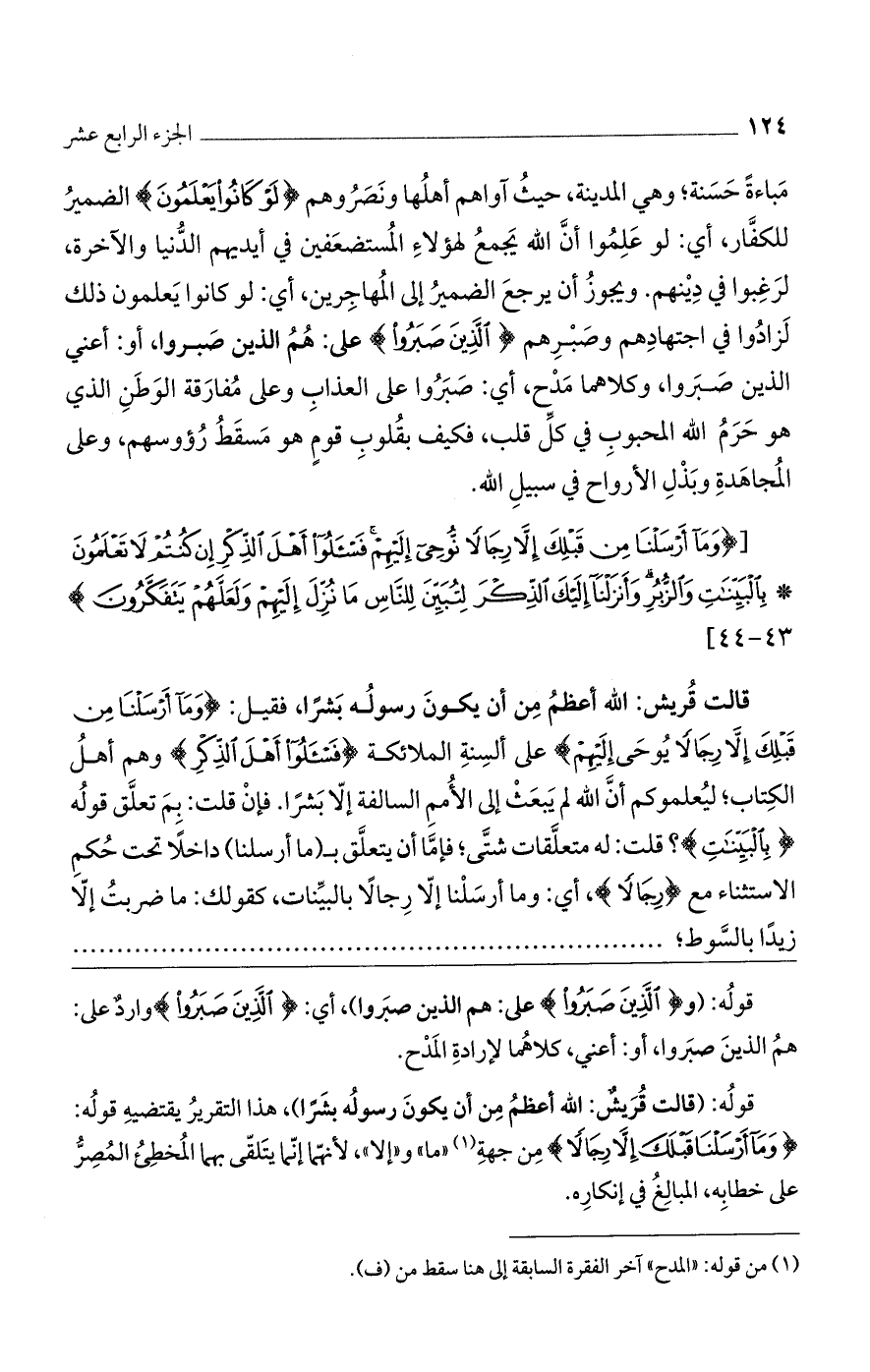 [(وَما أَرْسَلْنا مِنْ قَبْلِكَ إِلاَّ رِجالاً نُوحِي إِلَيْهِمْ فَسْئَلُوا أَهْلَ الذِّكْرِ إِنْ كُنْتُمْ لا تَعْلَمُونَ* بِالْبَيِّناتِ وَالزُّبُرِ وَأَنْزَلْنا إِلَيْكَ الذِّكْرَ لِتُبَيِّنَ لِلنَّاسِ ما نُزِّلَ إِلَيْهِمْ وَلَعَلَّهُمْ يَتَفَكَّرُونَ)].