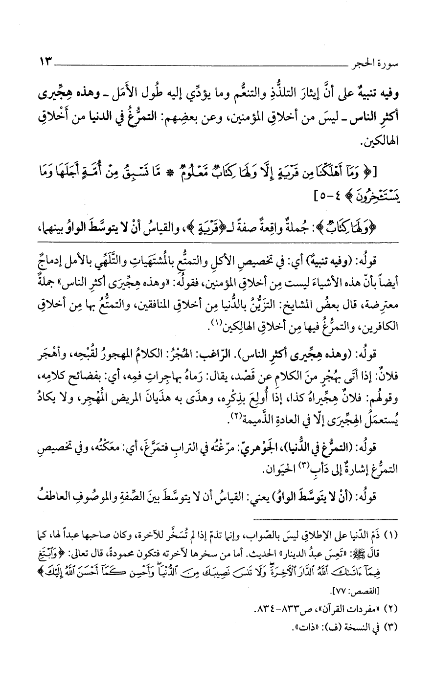 قوله: (وهذه هجيري أكثر الناس). الراغب: الهجرُ: الكلام المهجور لقبحه، وأهجر فلان: إذا أتى بهجر من الكلام عن قصد، يقال: رماه بهاجرات فمه، أي بفضائح كلامه، وقولهم: فلان هجيراه كذا، إذا أولع بذكره، وهذى به هذيان المريض المهجر، ولا يكاد يستعمل الهجيري إلا في العادة الذميمة.