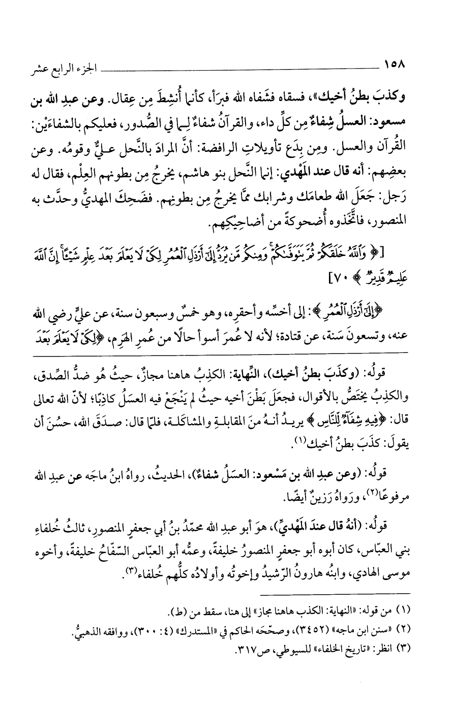 وكذب بطن أخيك)، فسقاه فشفاه الله فبرأ، كأنما أنشط من عقال. وعن عبد الله بن مسعود: