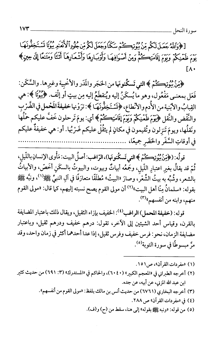 [(وَاللَّهُ جَعَلَ لَكُمْ مِنْ بُيُوتِكُمْ سَكَناً وَجَعَلَ لَكُمْ مِنْ جُلُودِ الْأَنْعامِ بُيُوتاً تَسْتَخِفُّونَها يَوْمَ ظَعْنِكُمْ وَيَوْمَ إِقامَتِكُمْ وَمِنْ أَصْوافِها وَأَوْبارِها وَأَشْعارِها أَثاثاً وَمَتاعاً إِلى حِينٍ)].