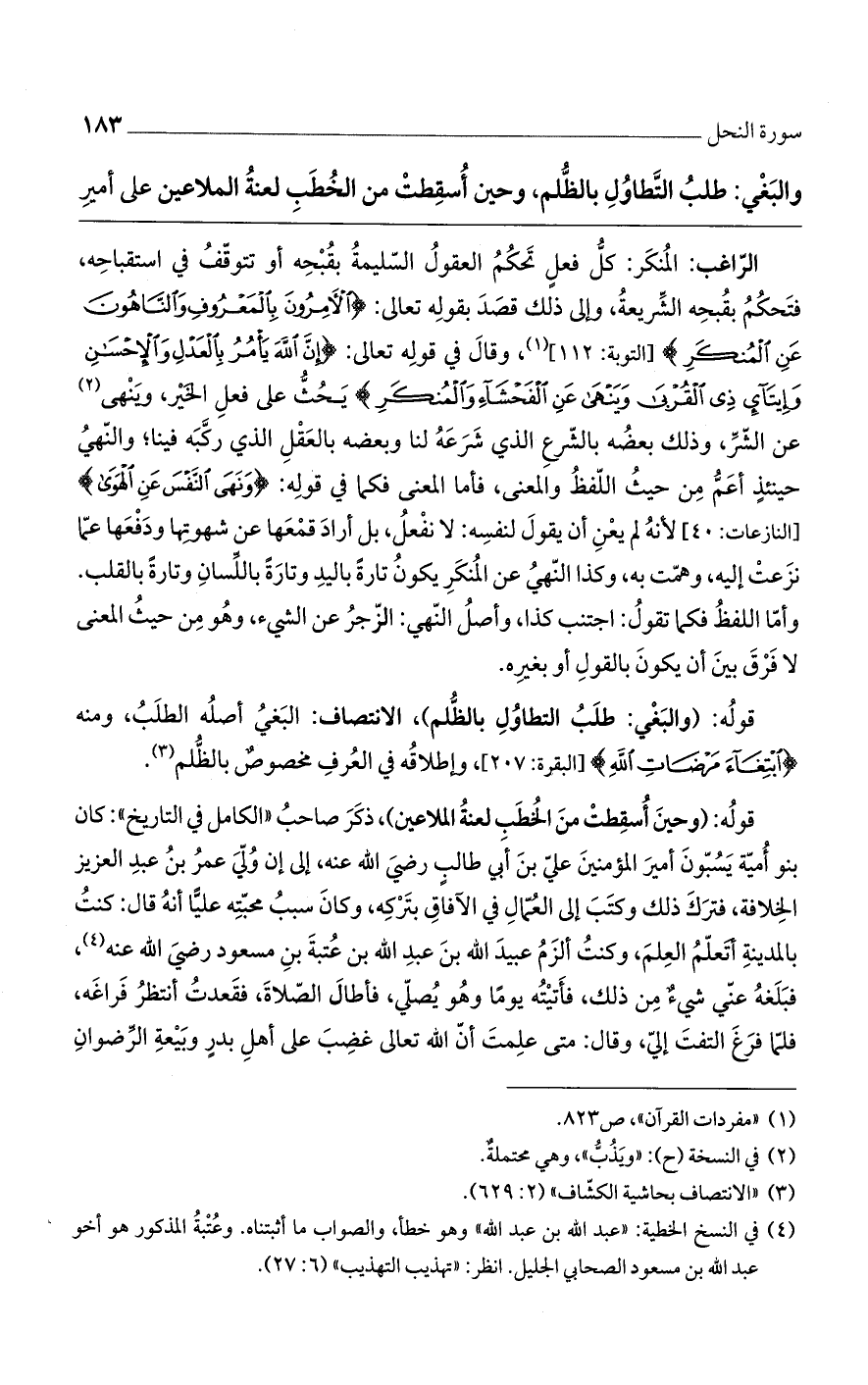 وَالْبَغْيِ: طلب التطاول بالظلم، وحين أسقطت من الخطب لعنة الملاعين على أمير