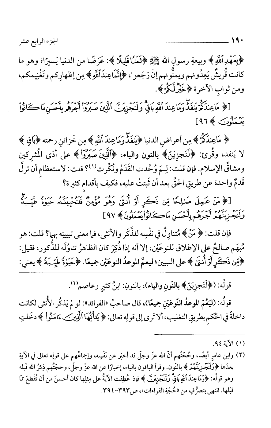 قوله: ((لَنَجْزِيَنَّ) بالنون والياء)، بالنون: ابن كثير وعاصم.