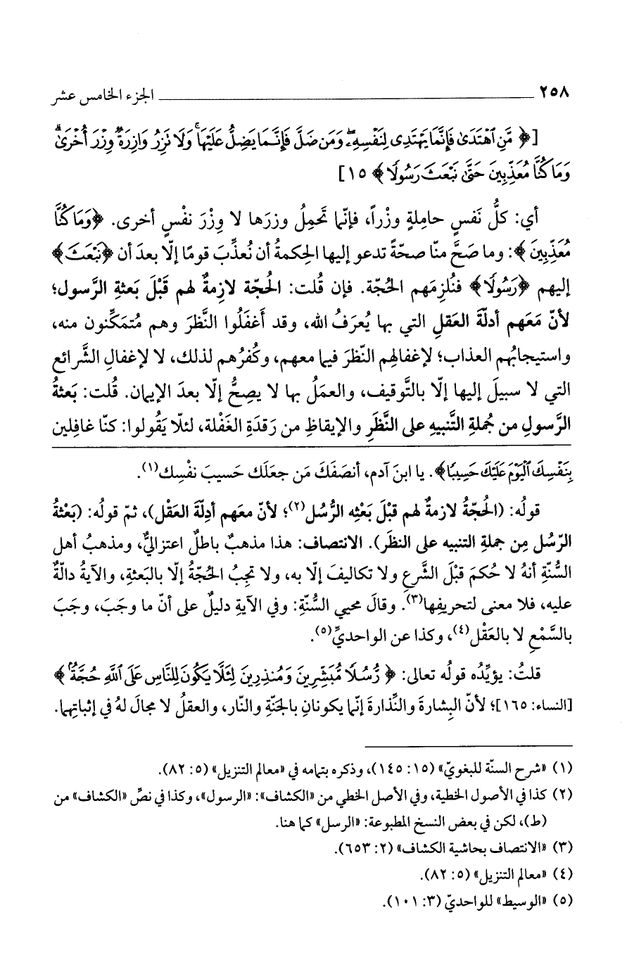 [(مَنِ اهْتَدى فَإِنَّما يَهْتَدِي لِنَفْسِهِ وَمَنْ ضَلَّ فَإِنَّما يَضِلُّ عَلَيْها وَلا تَزِرُ وازِرَةٌ وِزْرَ أُخْرى وَما كُنَّا مُعَذِّبِينَ حَتَّى نَبْعَثَ رَسُولًا)].