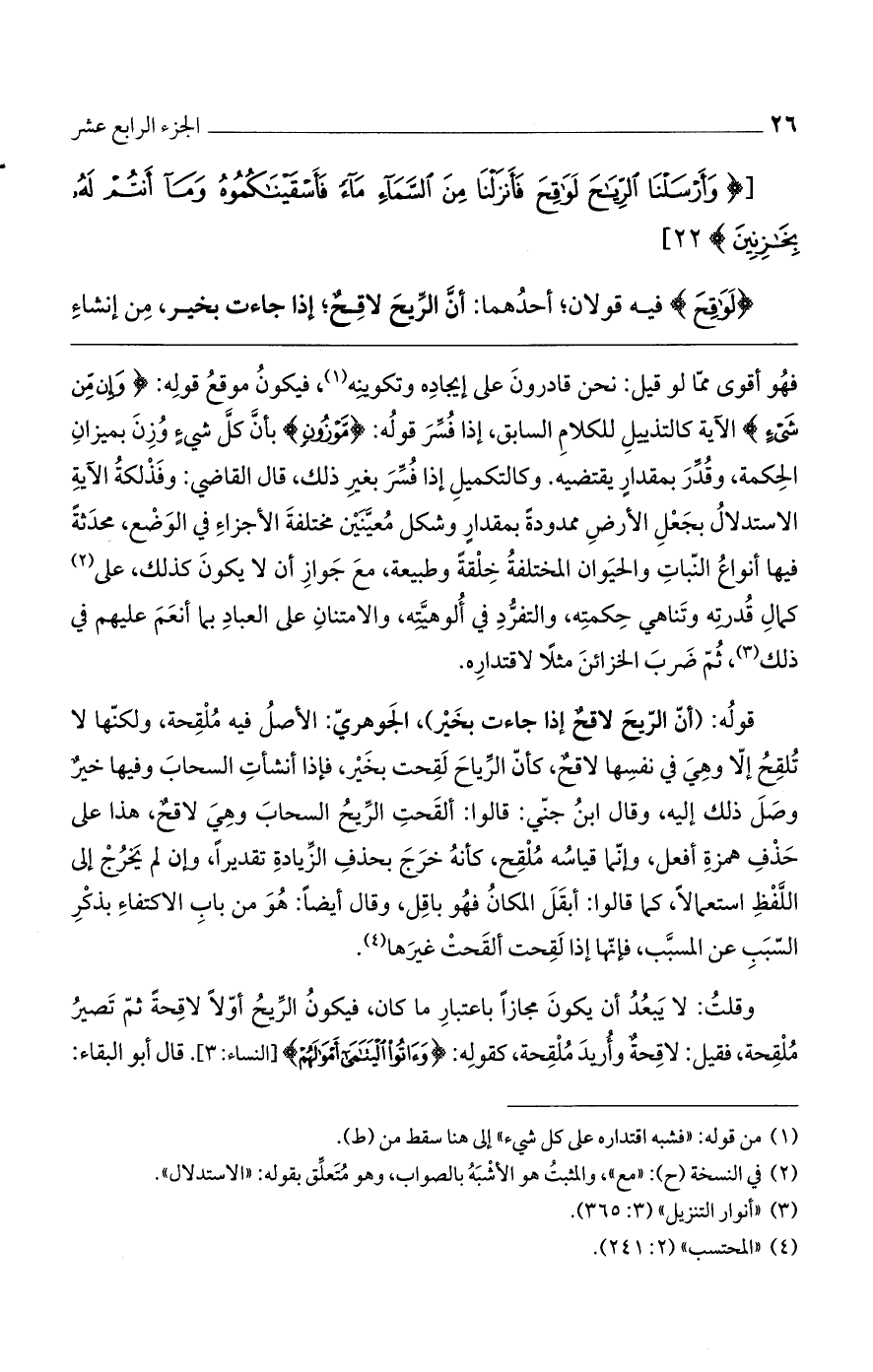 [(وَأَرْسَلْنَا الرِّياحَ لَواقِحَ فَأَنْزَلْنا مِنَ السَّماءِ ماءً فَأَسْقَيْناكُمُوهُ وَما أَنْتُمْ لَهُ بِخازِنِينَ)].