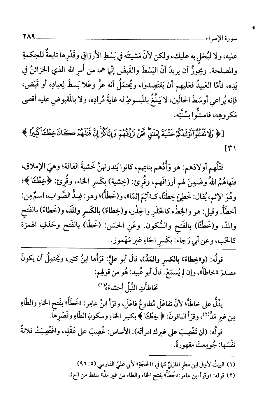 [(وَلا تَقْتُلُوا أَوْلادَكُمْ خَشْيَةَ إِمْلاقٍ نَحْنُ نَرْزُقُهُمْ وَإِيَّاكُمْ إِنَّ قَتْلَهُمْ كانَ خِطًْا كَبِيرًا)].