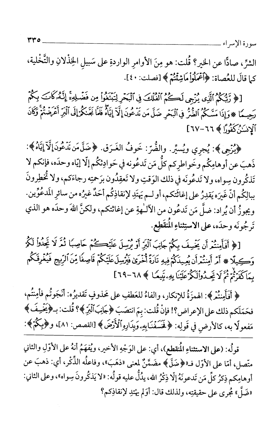 [(رَبُّكُمُ الَّذِي يُزْجِي لَكُمُ الْفُلْكَ فِي الْبَحْرِ لِتَبْتَغُوا مِنْ فَضْلِهِ إِنَّهُ كانَ بِكُمْ رَحِيماً* وَإِذا مَسَّكُمُ الضُّرُّ فِي الْبَحْرِ ضَلَّ مَنْ تَدْعُونَ إِلاَّ إِيَّاهُ فَلَمَّا نَجَّاكُمْ إِلَى الْبَرِّ أَعْرَضْتُمْ وَكانَ الْإِنْسانُ كَفُوراً)].