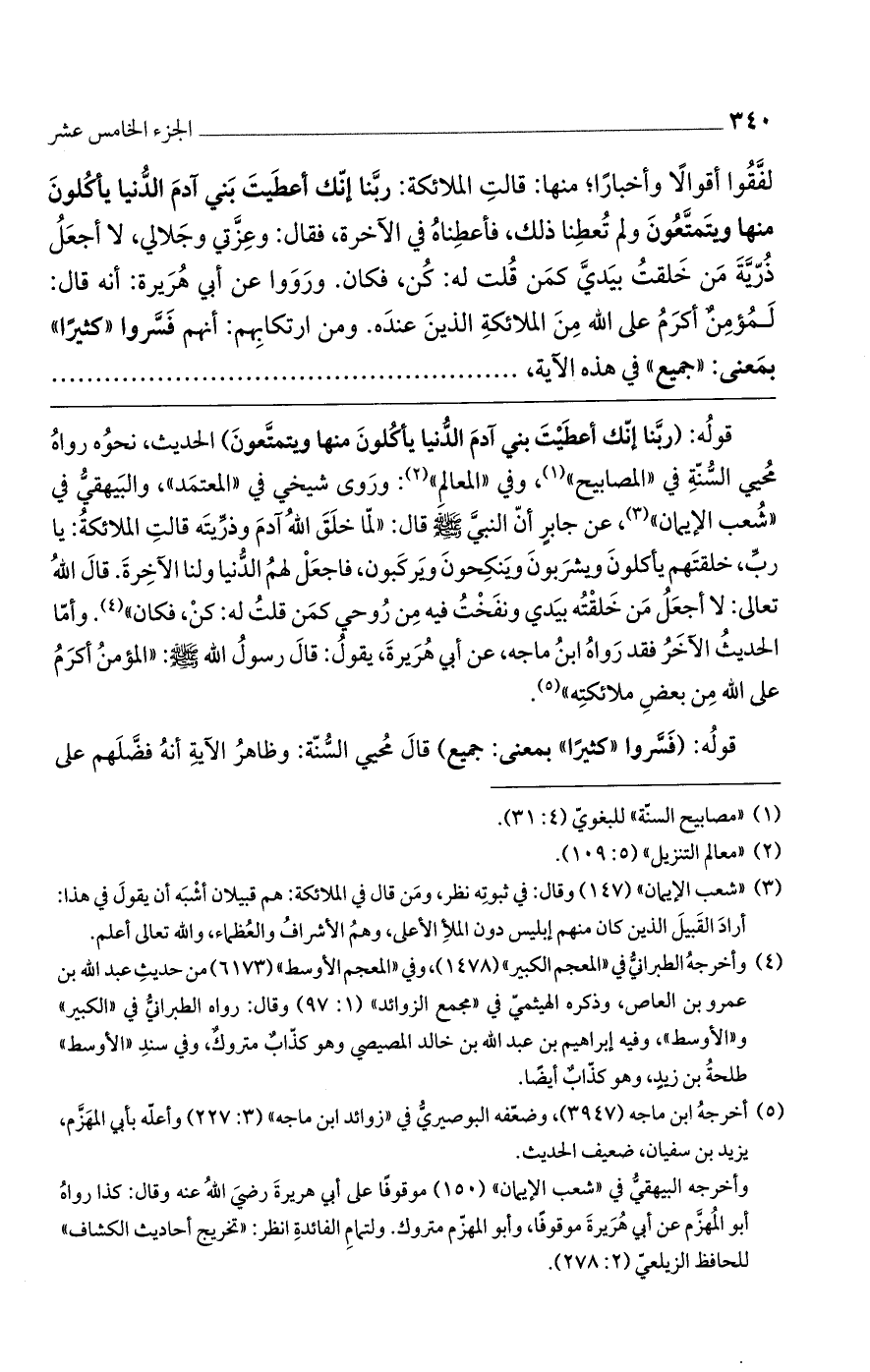 لفقوا أقوالا وأخبارا منها؛ قالت الملائكة: ربنا إنك أعطيت بني آدم الدنيا يأكلون منها ويتمتعون ولم تعطنا ذلك، فأعطناه في الآخرة. فقال: وعزتي وجلالي، لا أجعل ذرّية من خلقت بيدي كمن قلت له كن فكان. ورووا عن أبى هريرة أنه قال: لمؤمن أكرم على الله من الملائكة الذين عنده. ومن ارتكابهم أنهم فسروا كثِيراً) بمعنى «جميع» في هذه الآية،