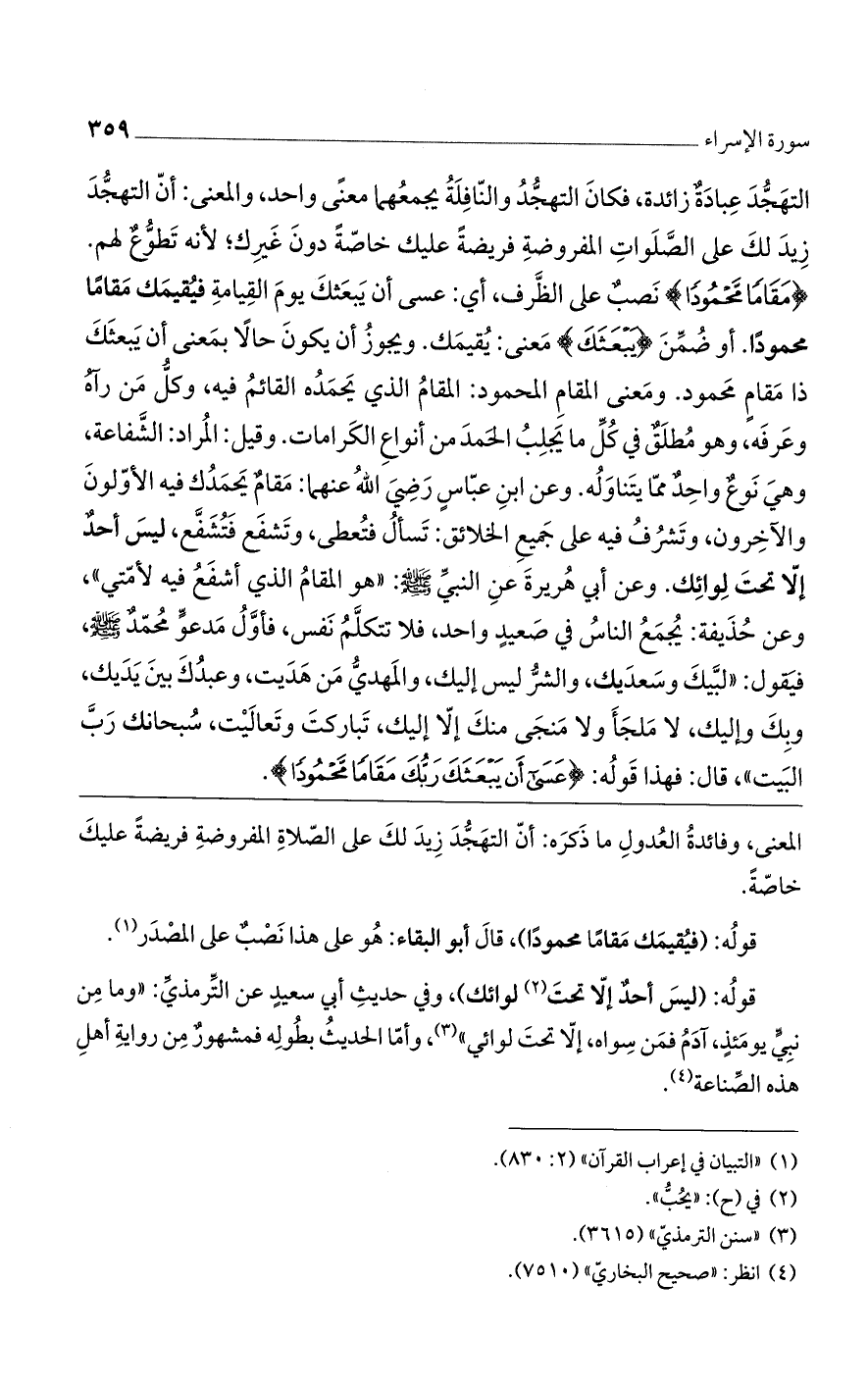 قوله: (فيقيمك مقاماً محموداً)، قال أبو البقاء: هُو على هذا نصبٌ على المصدر.