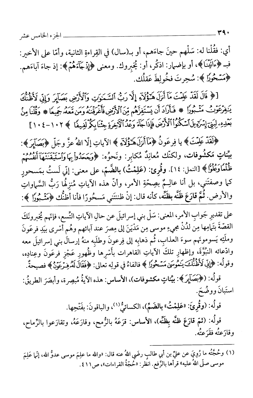 قوله: (وقرئ: "علمتُ" بالضم)، الكسائي، والباقون: بفتحها.