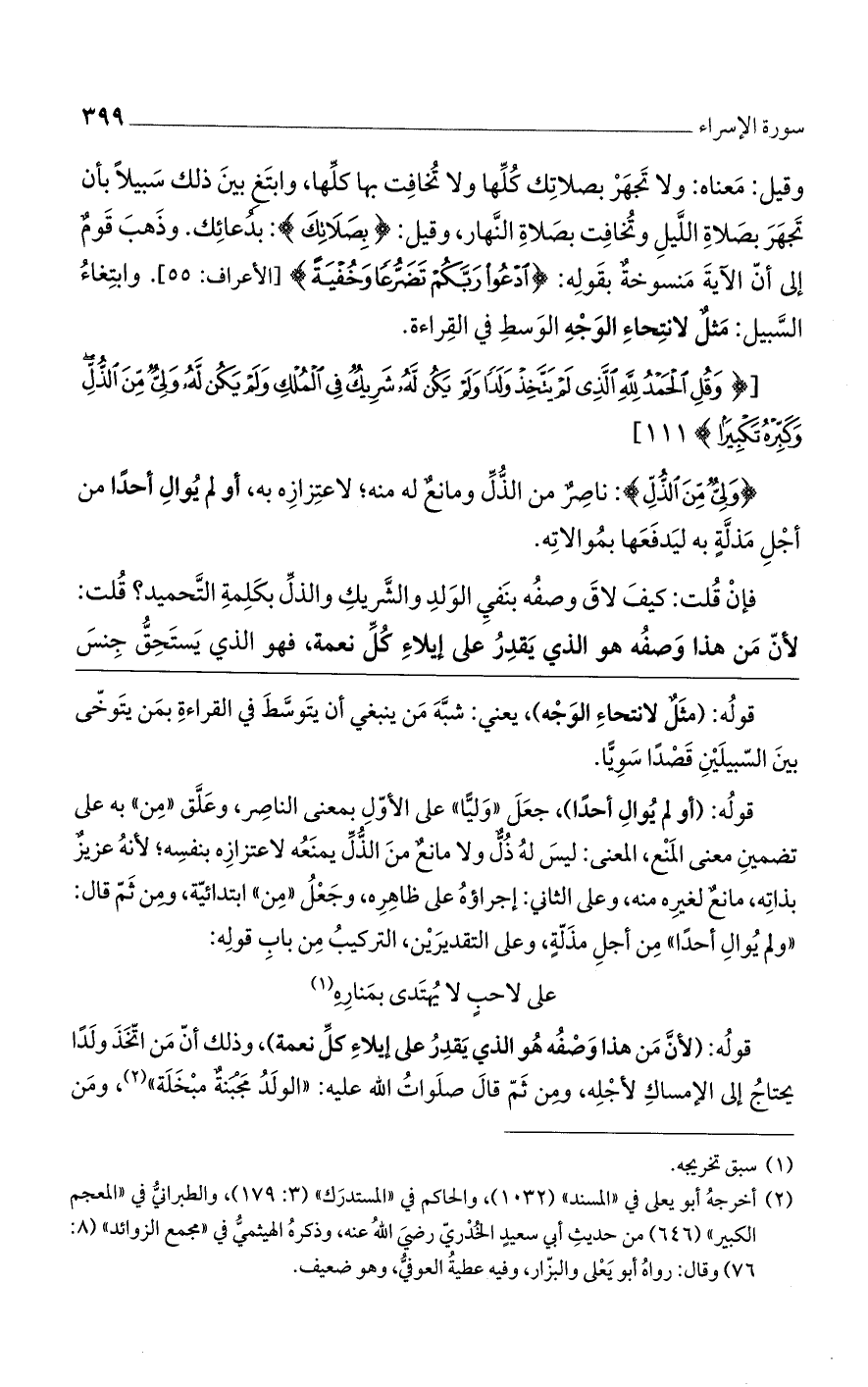 [(وَقُلِ الْحَمْدُ لِلَّهِ الَّذِي لَمْ يَتَّخِذْ وَلَداً وَلَمْ يَكُنْ لَهُ شَرِيكٌ فِي الْمُلْكِ وَلَمْ يَكُنْ لَهُ وَلِيٌّ مِنَ الذُّلِّ وَكَبِّرْهُ تَكْبِيراً)].
