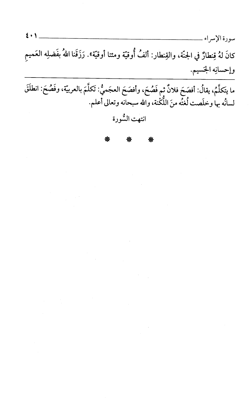 كان له قنطار في الجنة، والقنطار ألف أوقية ومائتا أوقية». رزقنا الله بفضله العميم وإحسانه الجسيم.