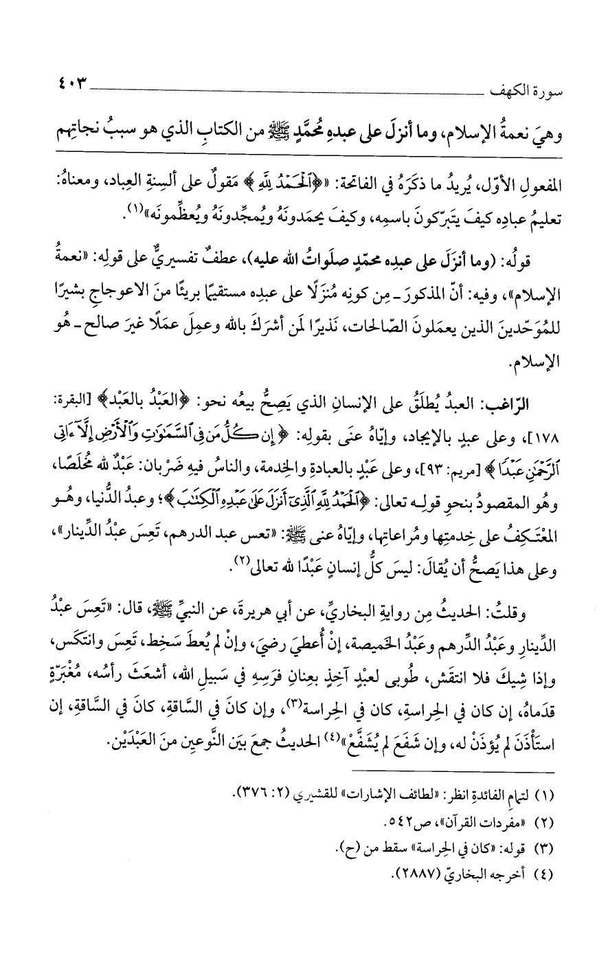 الراغب: العبدُ يُطلق على الإنسان الذي يصح بيعه نحو: (الْعَبْدُ بِالْعَبْدِ) [البقرة: 178]، وعلى عبدٍ بالإيجاد، وإياه عني بقوله: (إِنْ كُلُّ مَنْ فِي السَّمَوَاتِ وَالأَرْضِ إِلاَّ آتِي الرَّحْمَنِ عَبْداً) [مريم: 93]، وعلى عبدٍ بالعبادة والخدمة، والناسُ فيه ضربان: عبدٌ لله مخلصاً، وهو المقصود بنحو قوله تعالى: (الْحَمْدُ لِلَّهِ الَّذِي أَنزَلَ عَلَى عَبْدِهِ الْكِتَابَ)؛ وعبدُ الدنيا، وهو المعتكف على خدمتها ومراعاتها، وإياه عني صلى الله عليه وسلم: "تعس عبد الدرهم، تعس عبدُ الدينار"، وعلى هذا يصح أن يُقال: ليس كل إنسان عبداً تعالى.