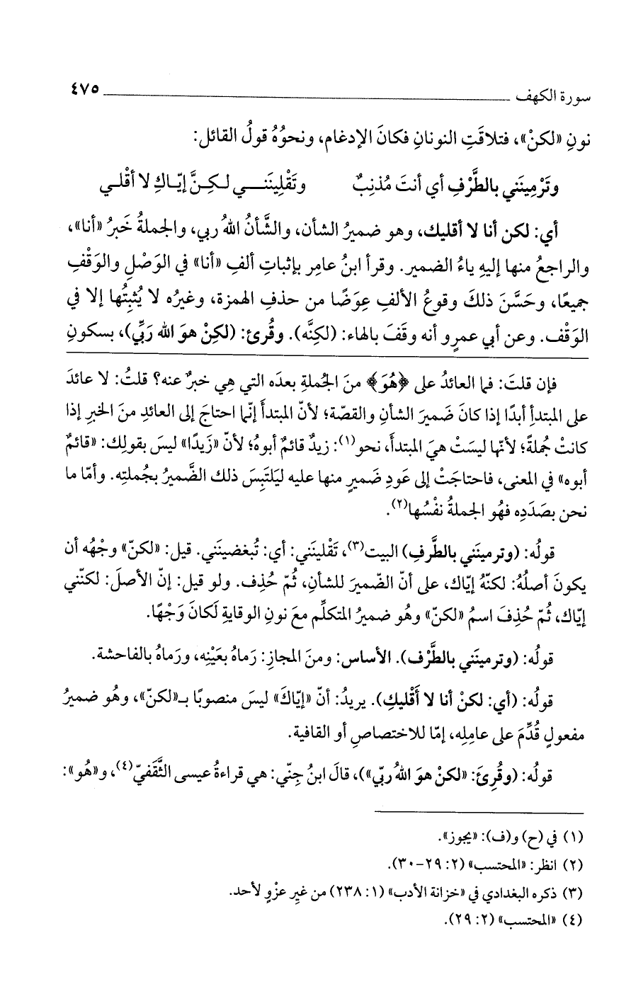 قوله: (وقرئ: " لَكِن هُوَ اللَّهُ رَبِّي)، قال ابن جني: هي قراءة عيسى الثقفي، و"هُو":