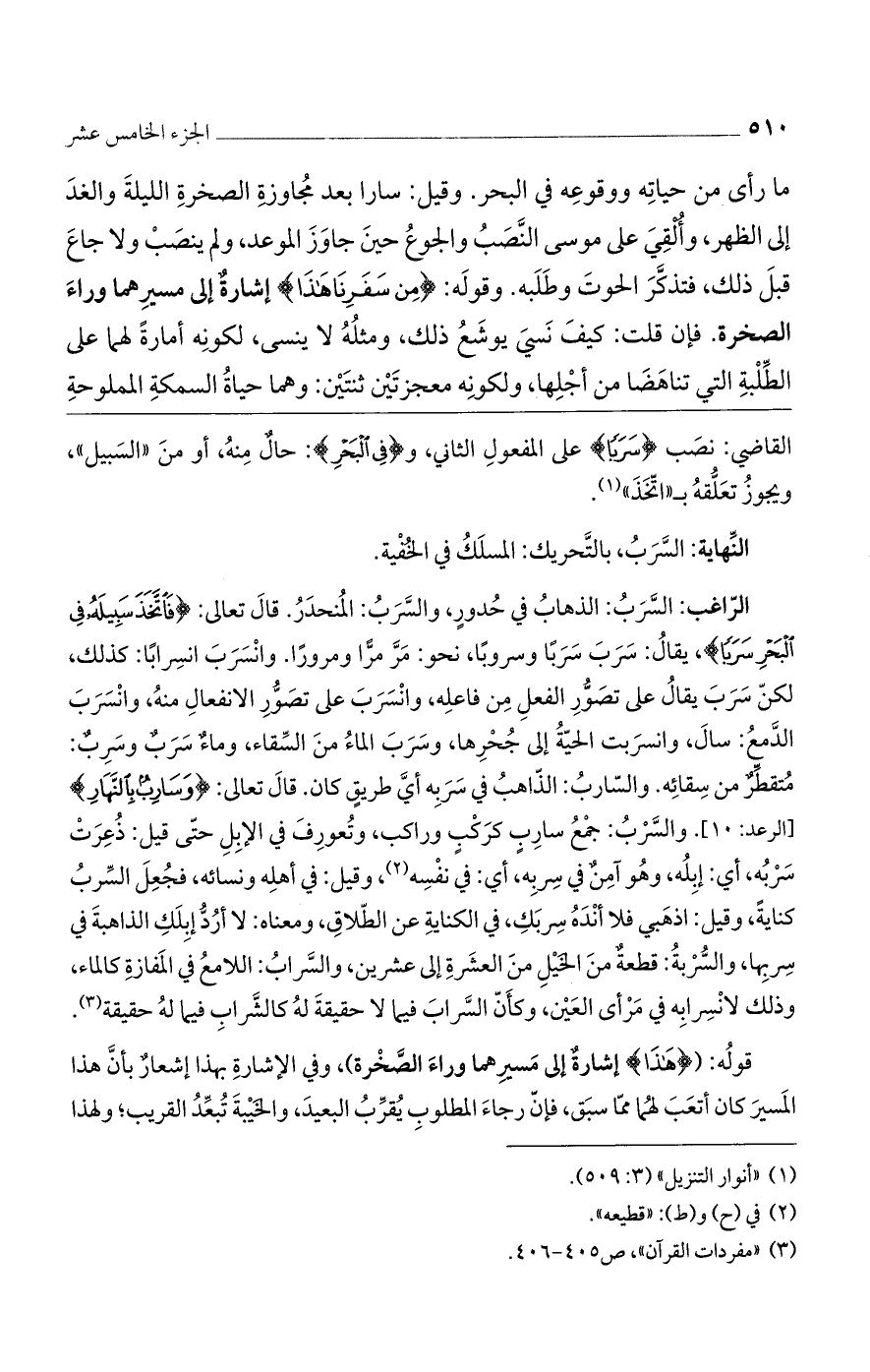 القاضي: نصب (سَرَباً) على المفعول الثاني، و (فِي الْبَحْرِ): حالٌ منه، أو من "السبيل"، ويجوز تعلقه بـ "اتخذ".