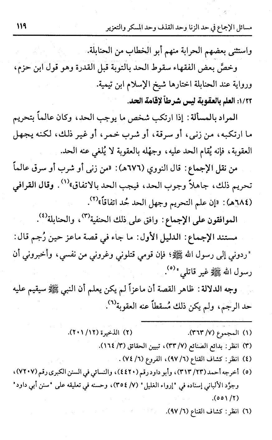 [22/ 1] العلم بالعقوبة ليس شرطًا لإقامة الحد.